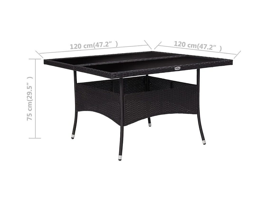 Tuintafel met glazen blad, zwart, 90x90x75 cm, gevlochten hars