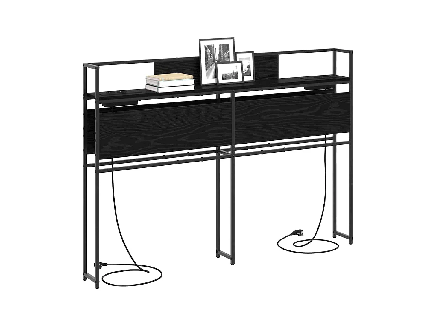Opberghoofdbord met oplaadstation Zwart Eiken 135 cm