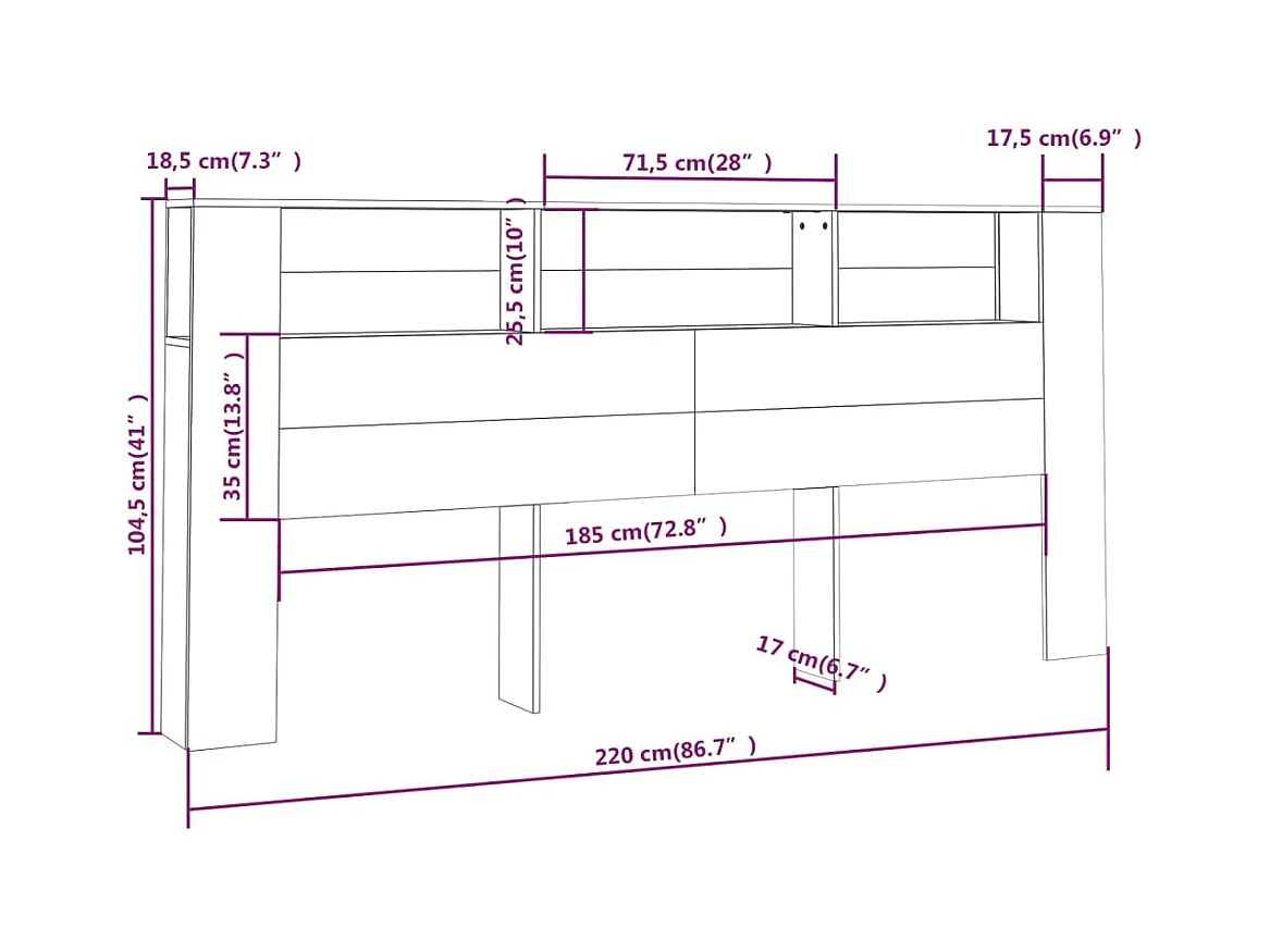 Hoofdbordkast 220 x 18,5 x 104,5 cm bewerkt hout