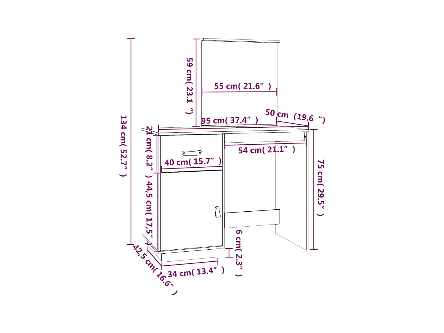 Kaptafel met zwarte spiegel 80x41x144,5 cm