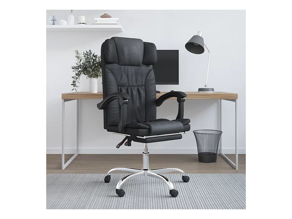 Zwarte draaibare bureaustoel van gebogen hout en kunstleer