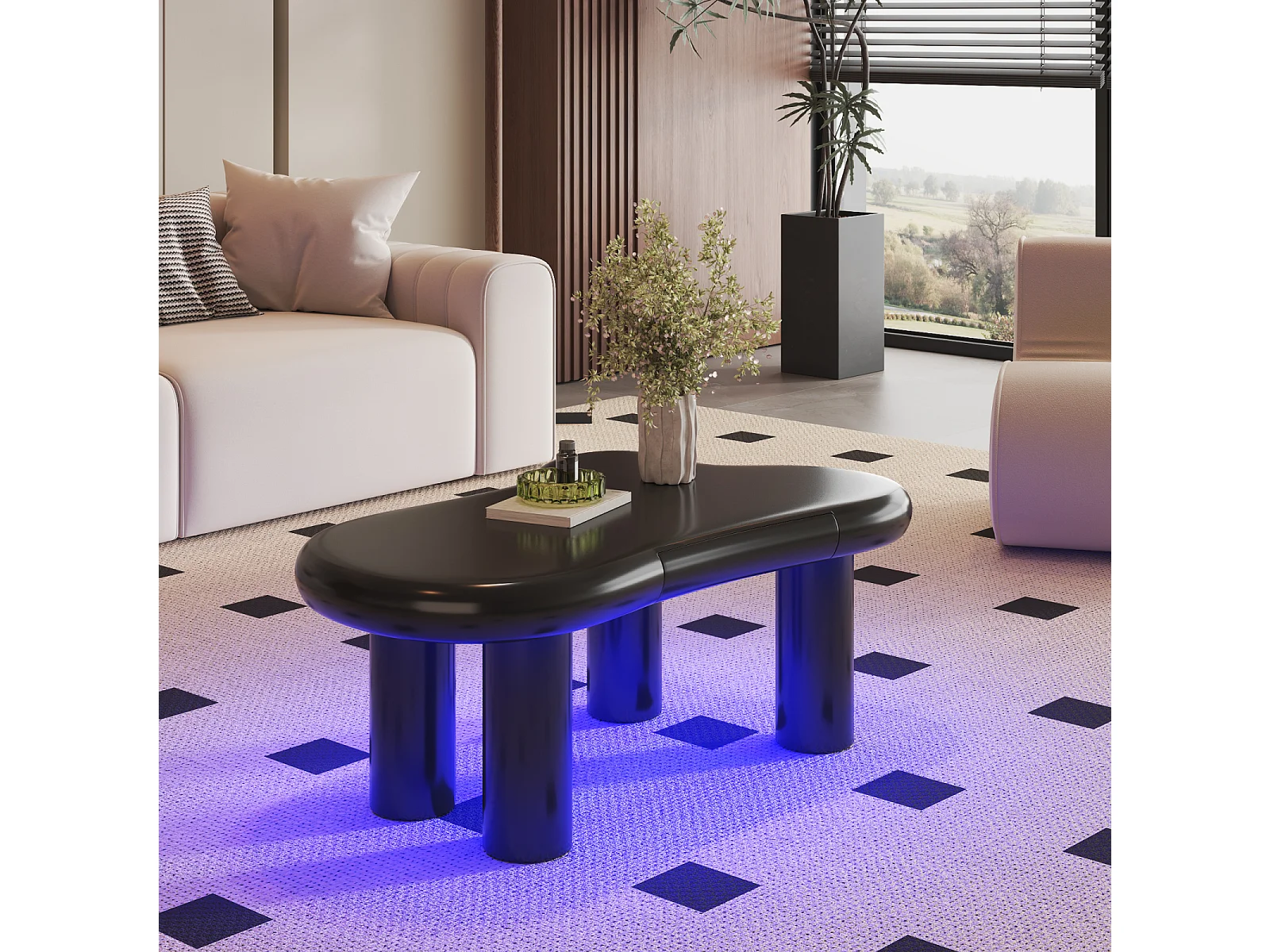 Zwarte Cloud salontafel met ledverlichting, 16 kleuren, ronde poten, voor woonkamer en kinderkamer
