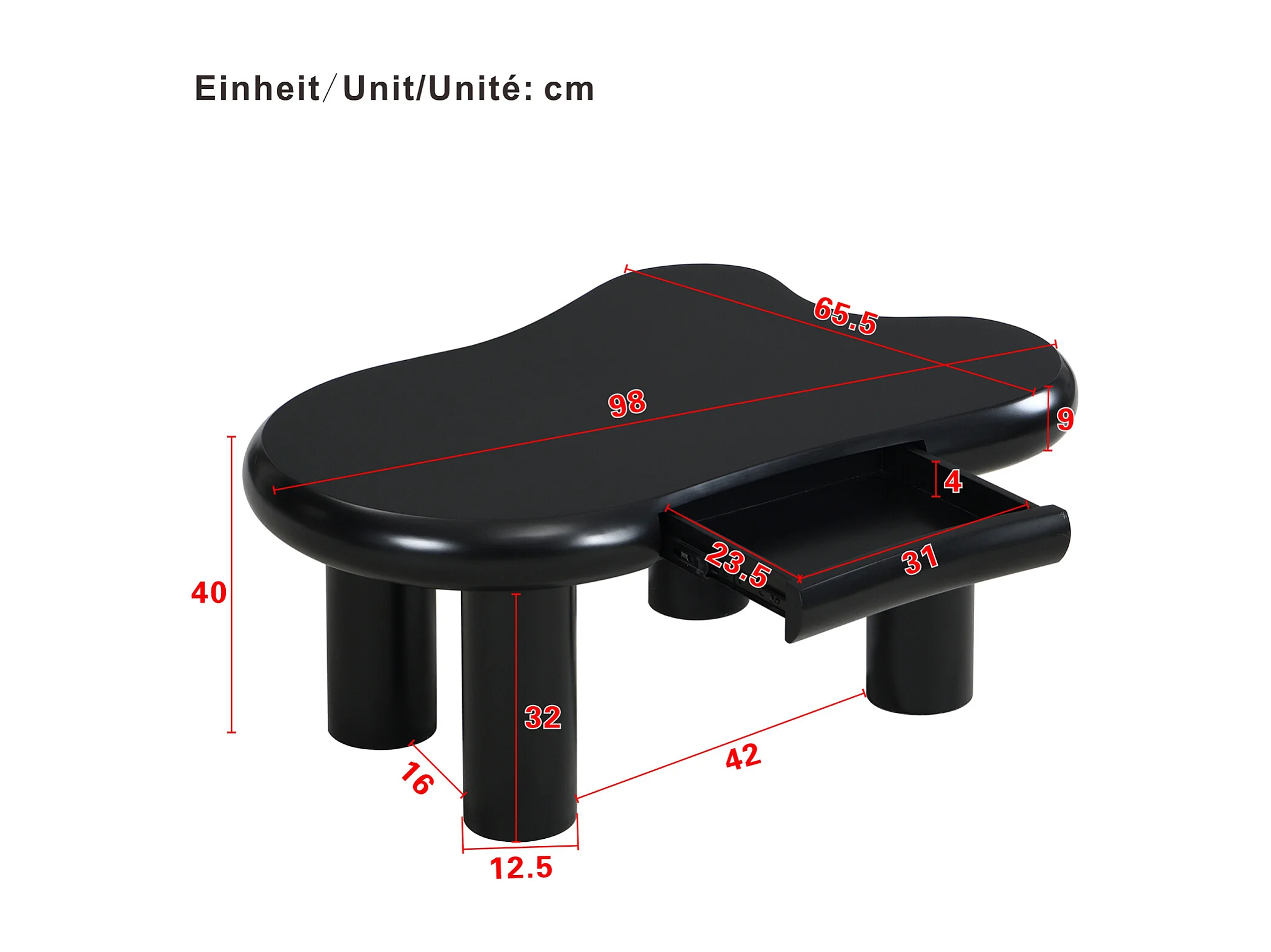 Wolkvormige MDF salontafel, zwarte salontafel met 1 lade en ledverlichting, voor woonkamer en balkon