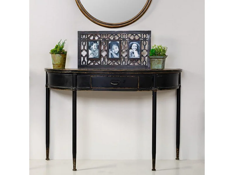 Zwarte metalen consoleset voor de hal met 1 lade
