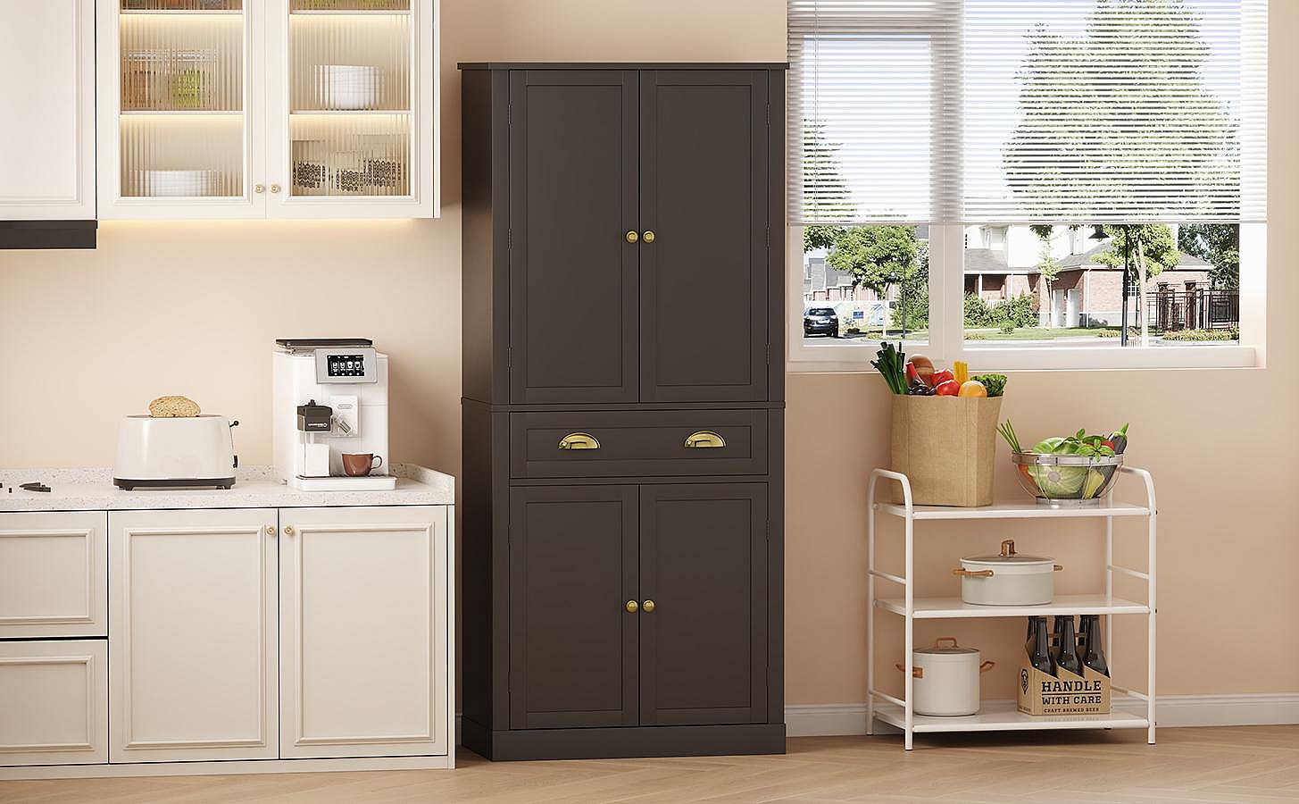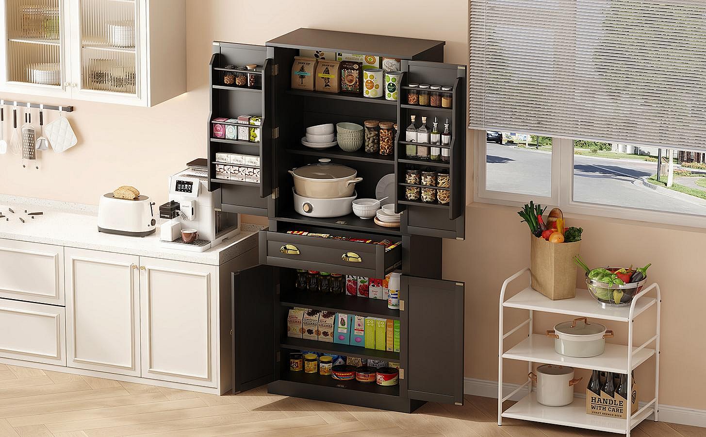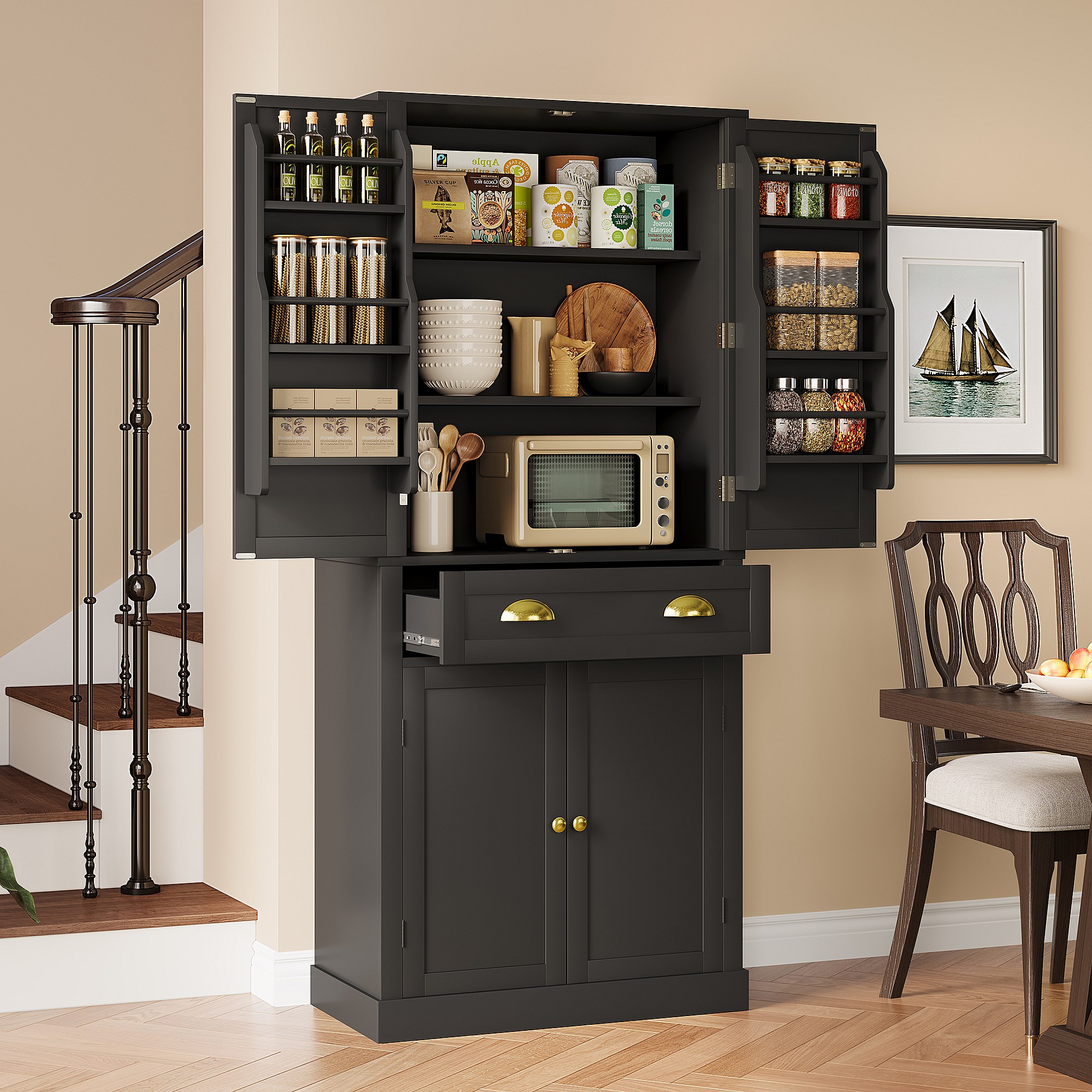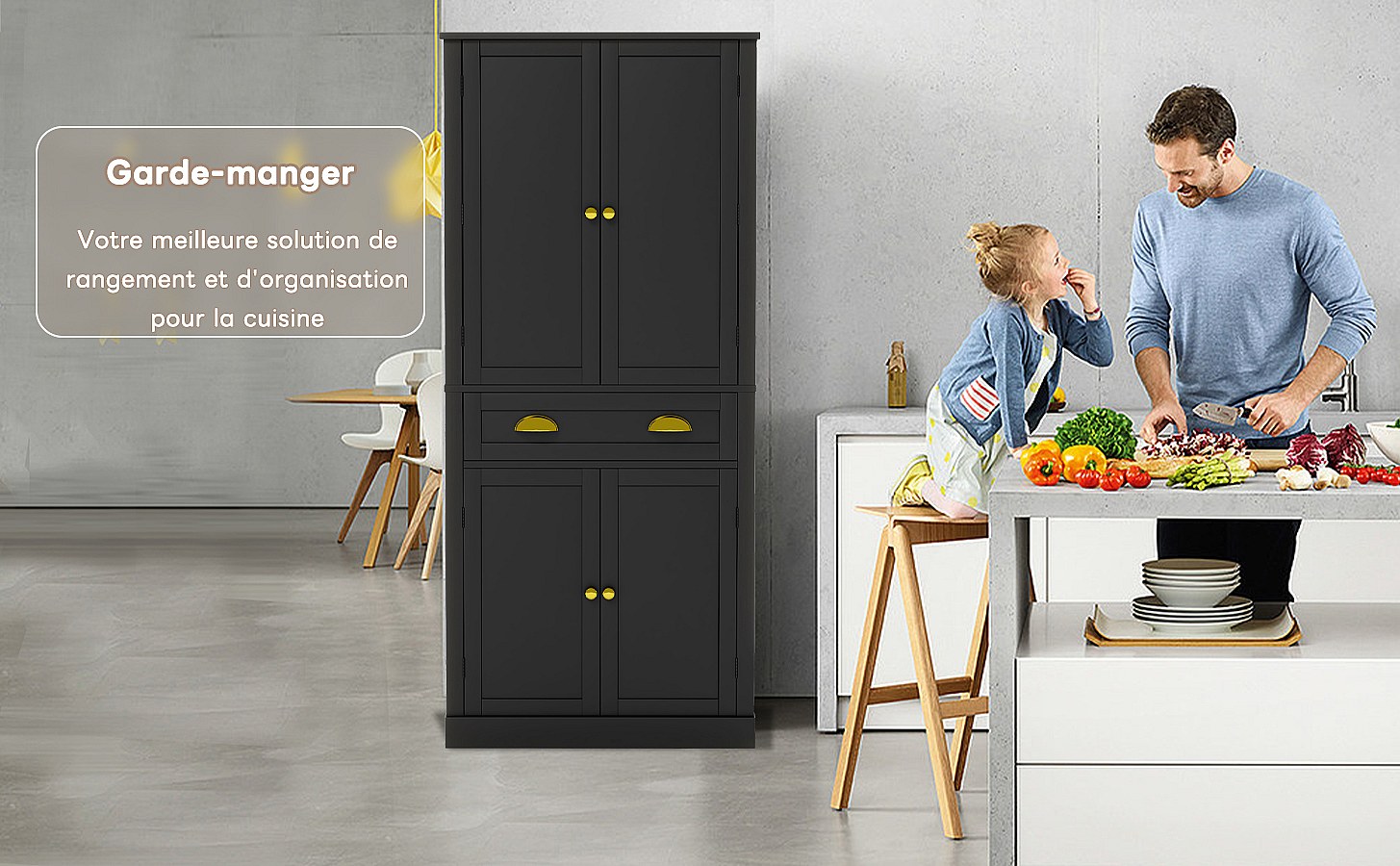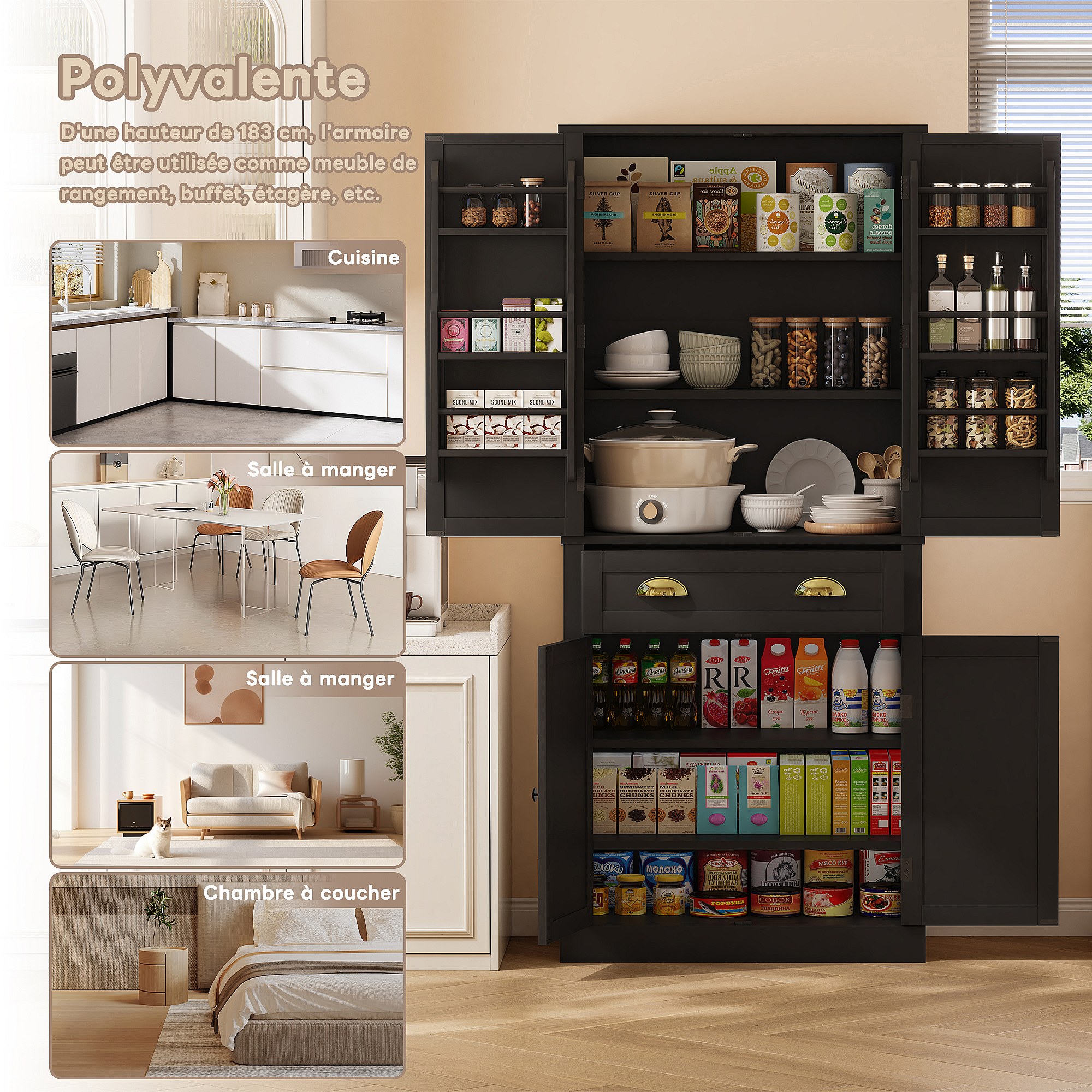 Zwarte opbergkast, 4 deuren en 1 lade, 6 vakken, 4 verstelbare planken, ideaal voor keuken, eetkamer, woonkamer