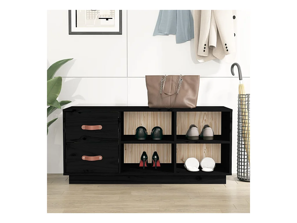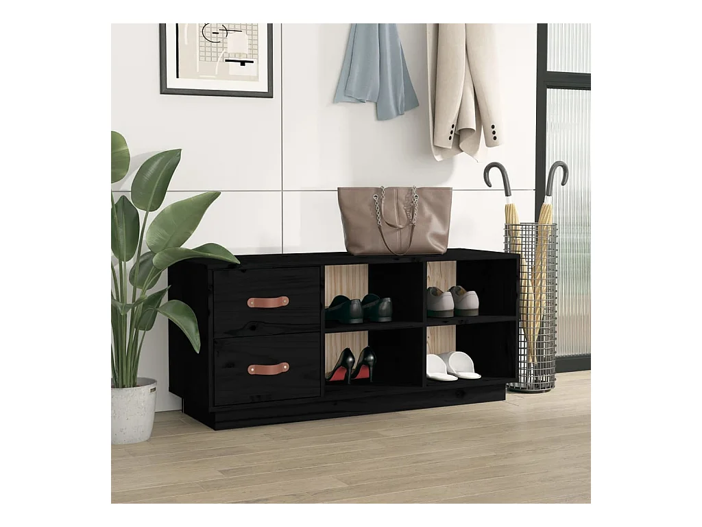 Zwarte schoenenbank 100x34x45 cm Massief grenenhout