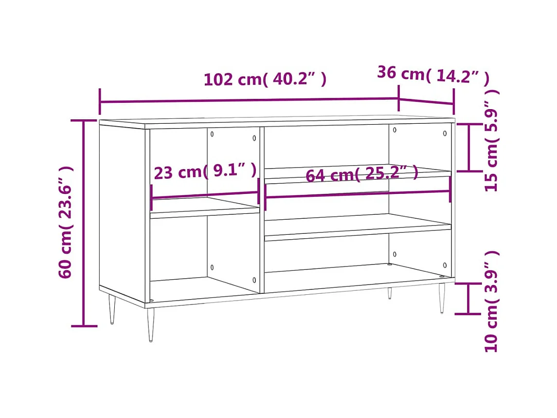 Zwarte schoenenkast 102x36x60 cm Technisch hout
