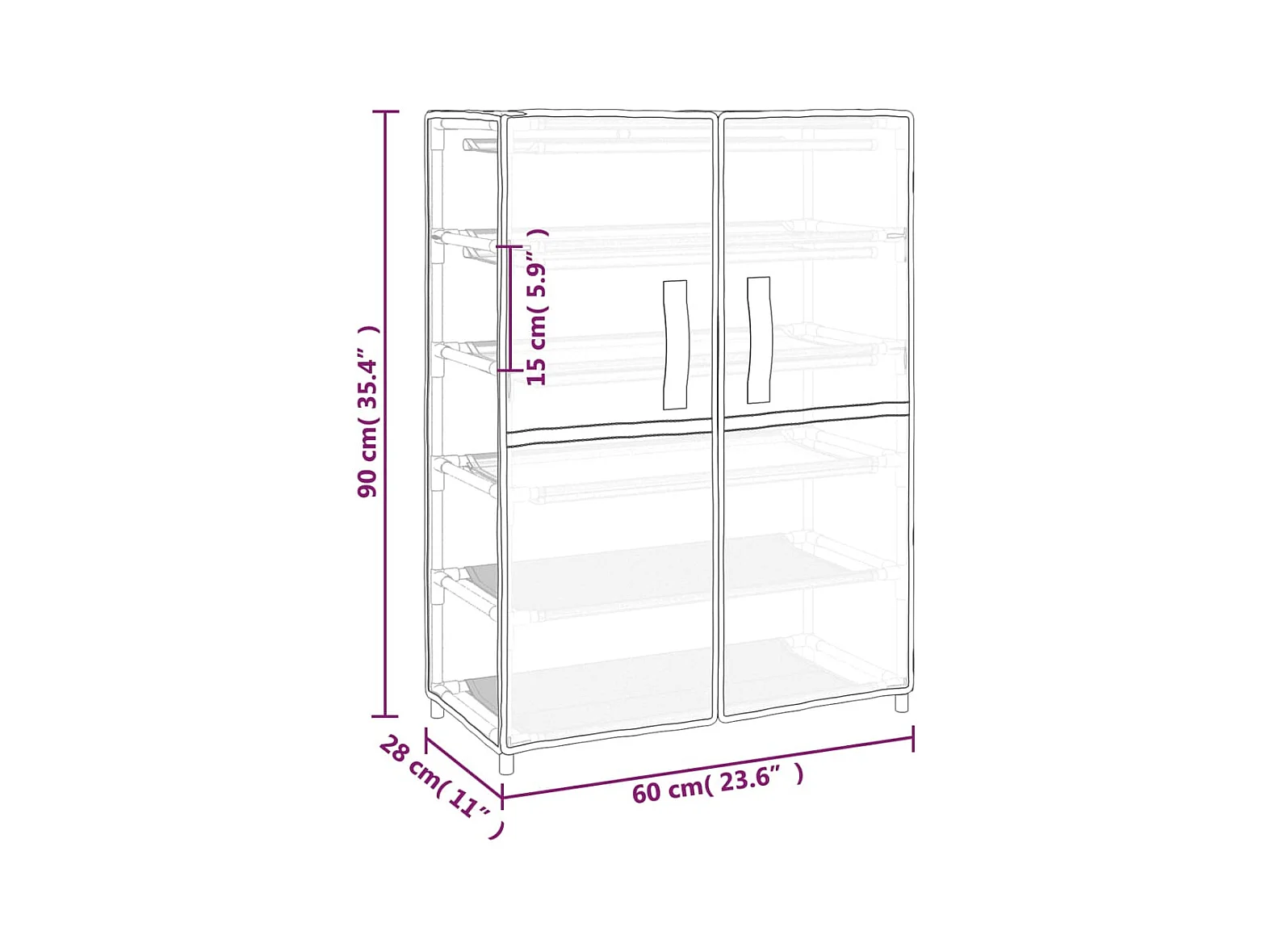 Zwarte schoenenkast 60x28x90 cm Stof