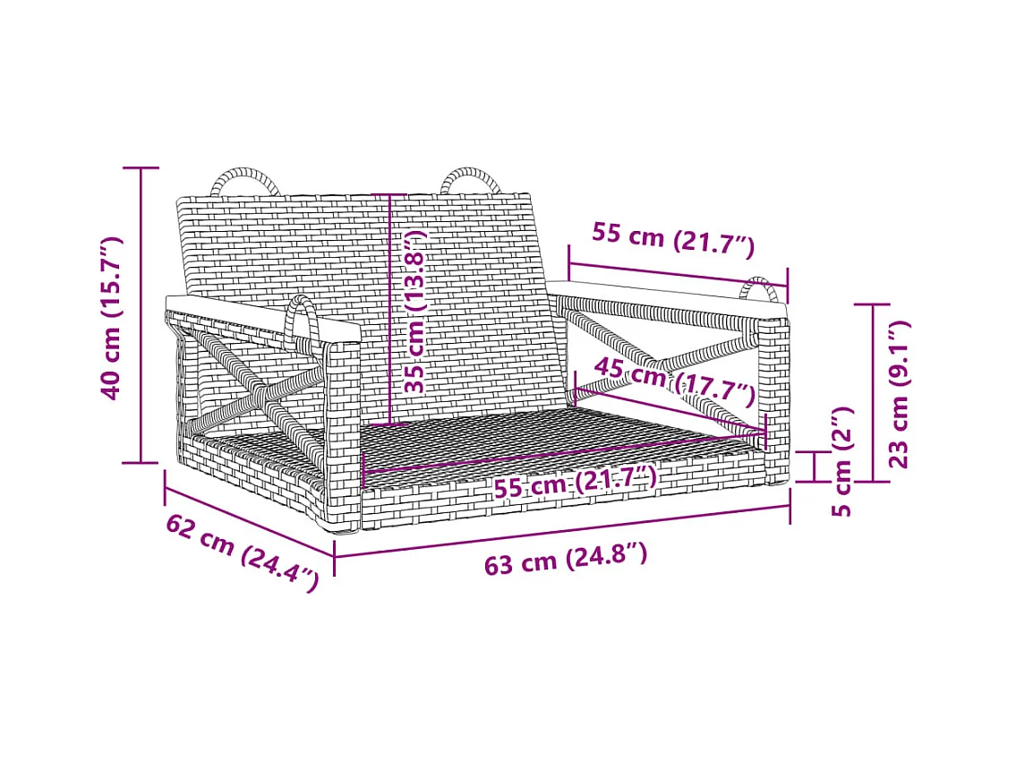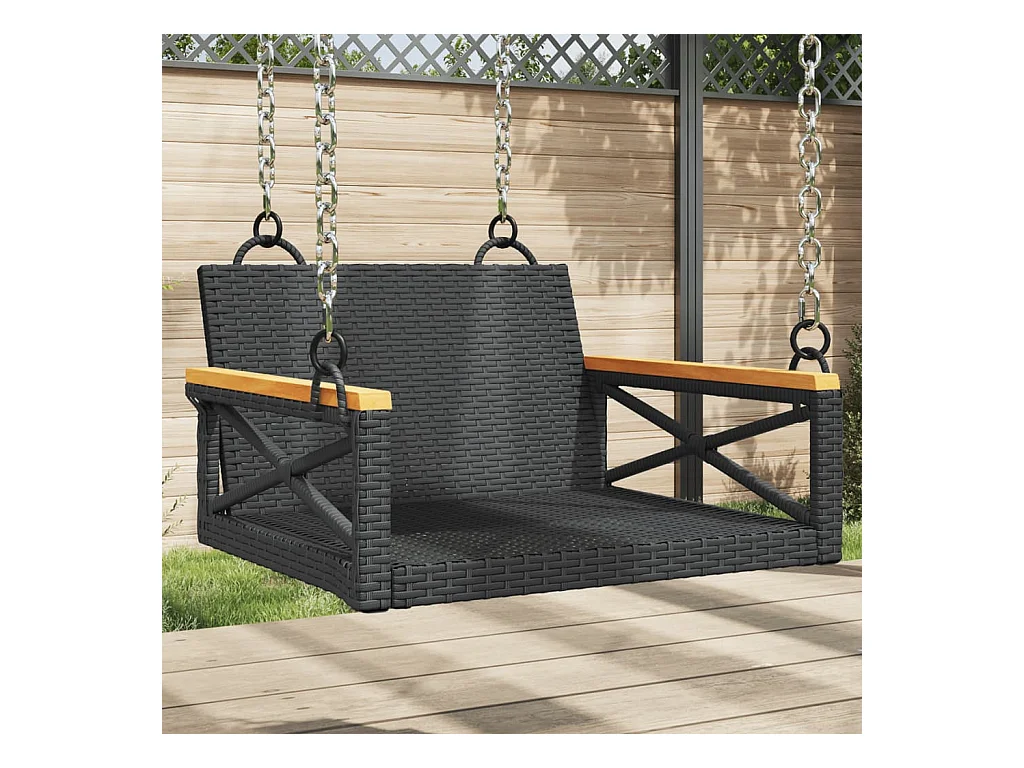 Schommelstoel met zwarte kussens 63x62x40 cm geweven hars