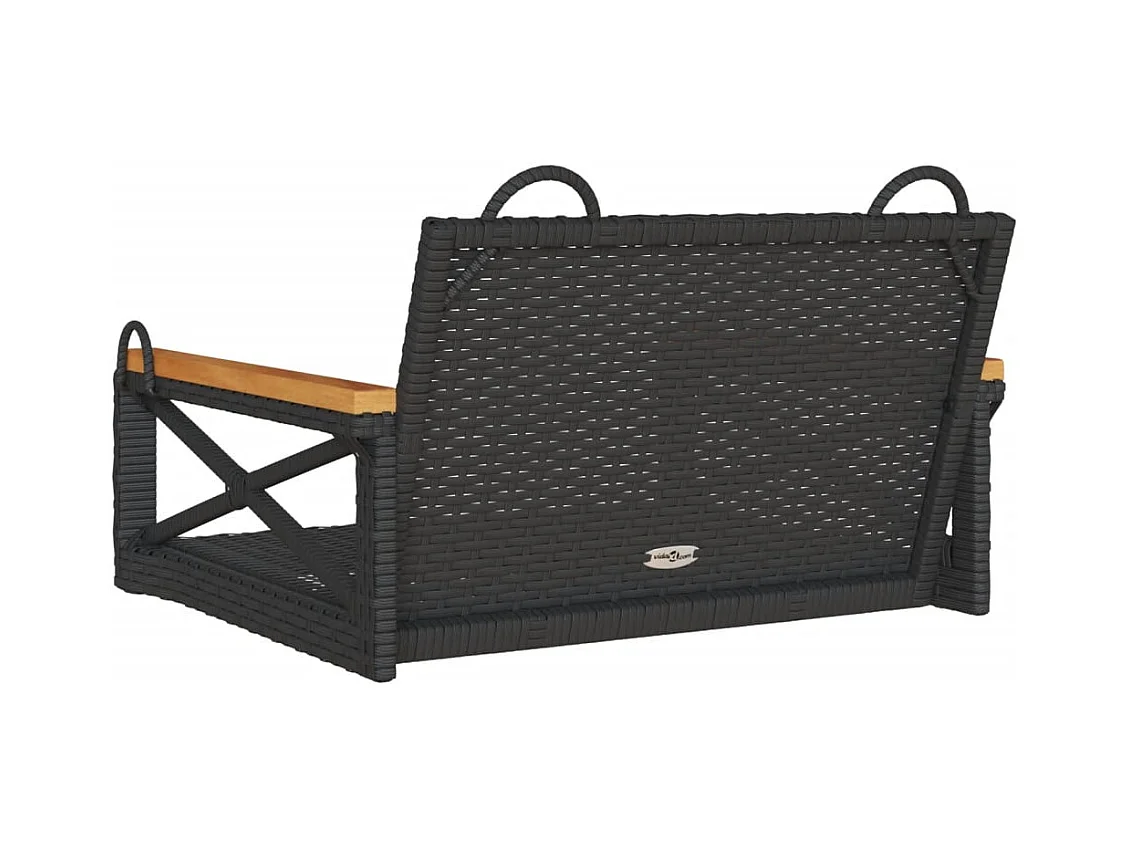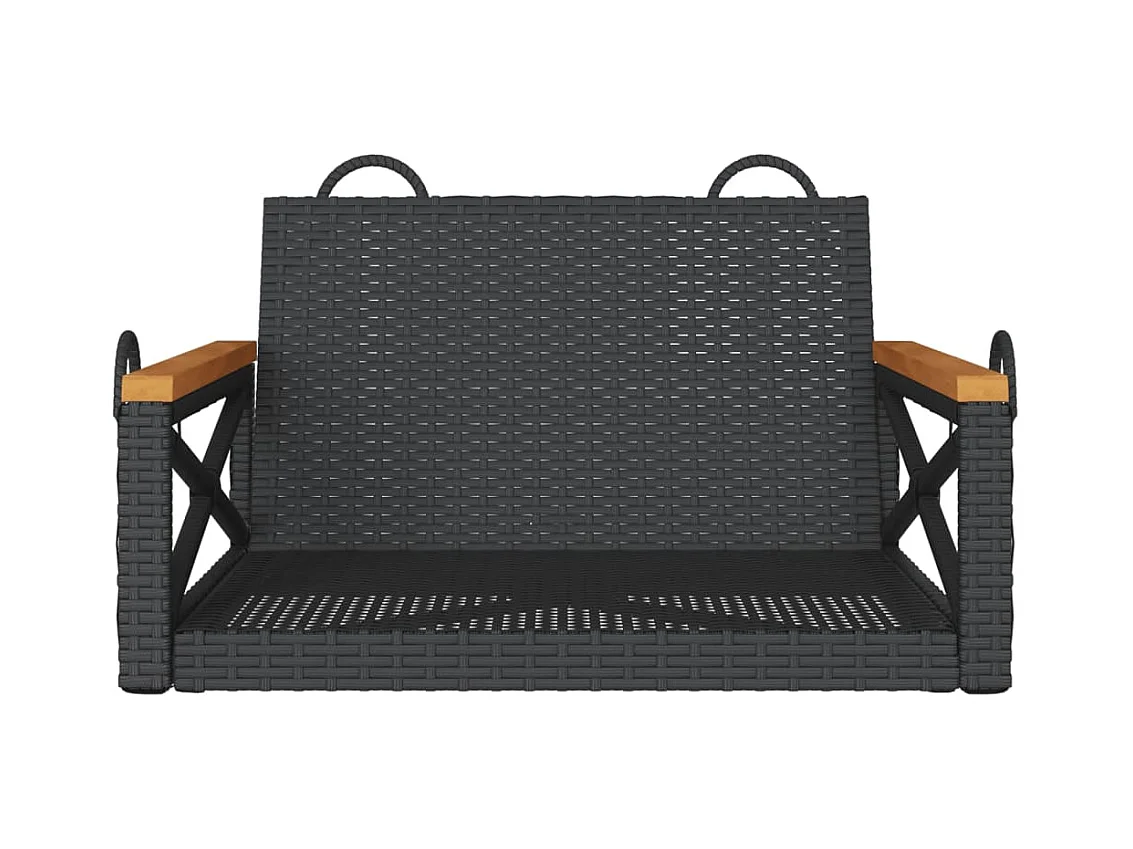 Schommelstoel met zwarte kussens 109x62x40 cm geweven hars