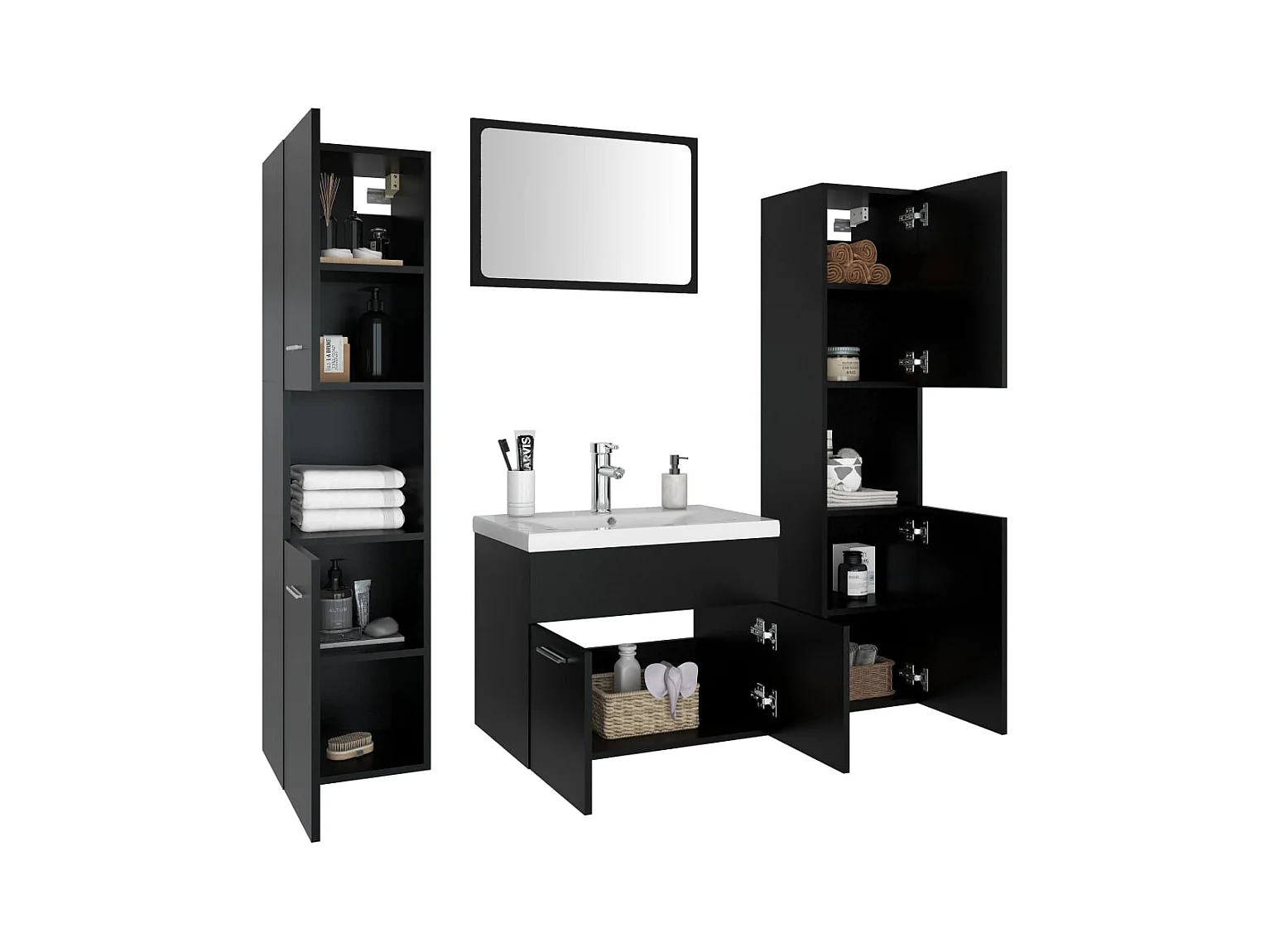 Badkamermeubelset Wandmontage 3-delig Zwart Eiken
