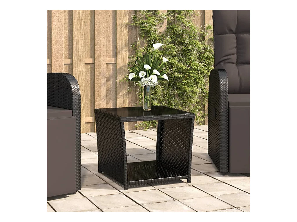 Zwarte tuintafel 45x45x37 cm gevlochten hars en acaciahout