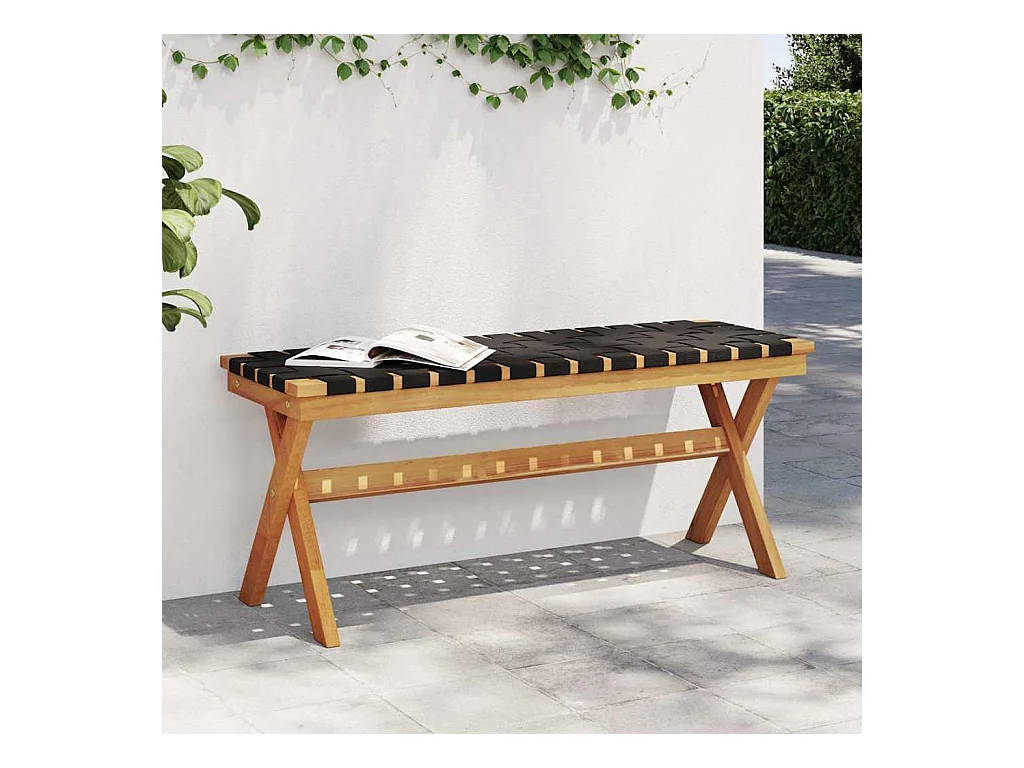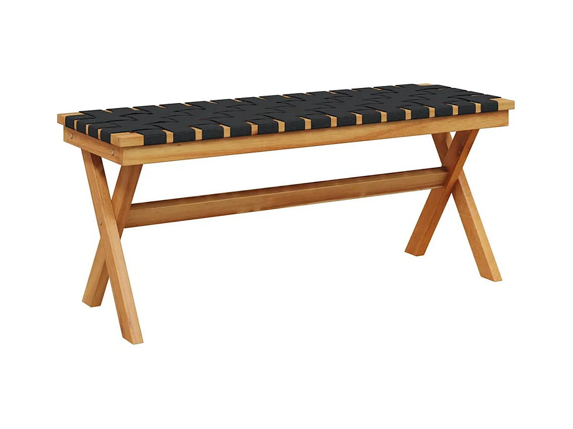 Tuinbank met zwart kussen 110x30x40,5 cm gevlochten hars