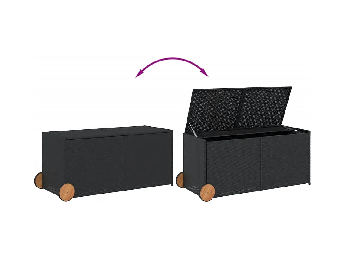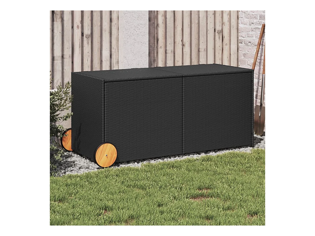 Zwarte tuinopslagbox van kunstharsriet en wielen
