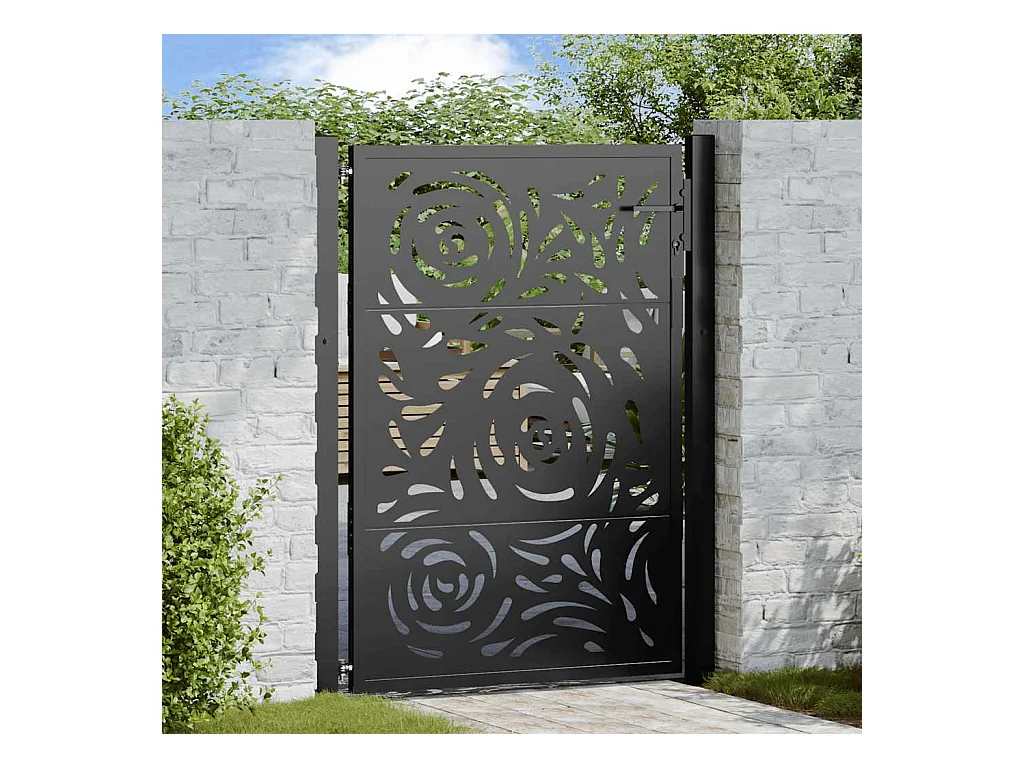 Zwarte tuinpoort 105x106 cm staal vlamdesign