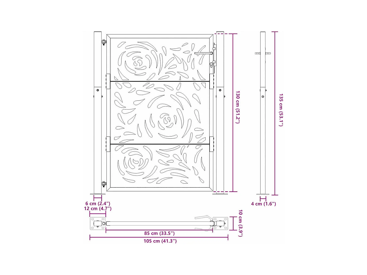 Zwarte tuinpoort 105x155 cm staal vlamdesign