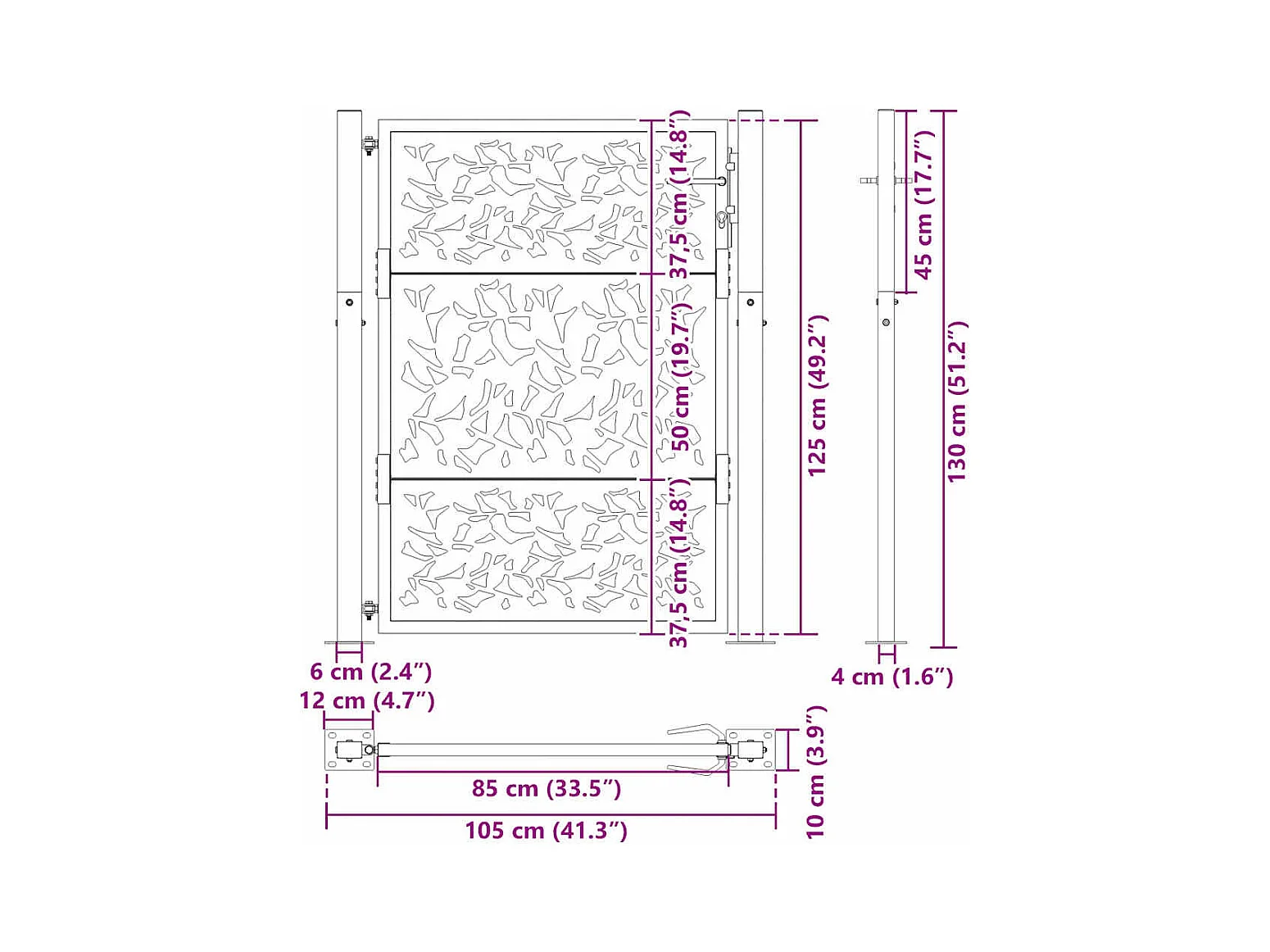 Zwarte tuinpoort 105x130 cm staal licht design