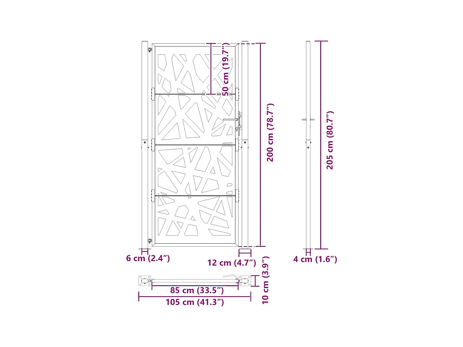 Zwarte tuinpoort 105x205 cm staal design van lijnen