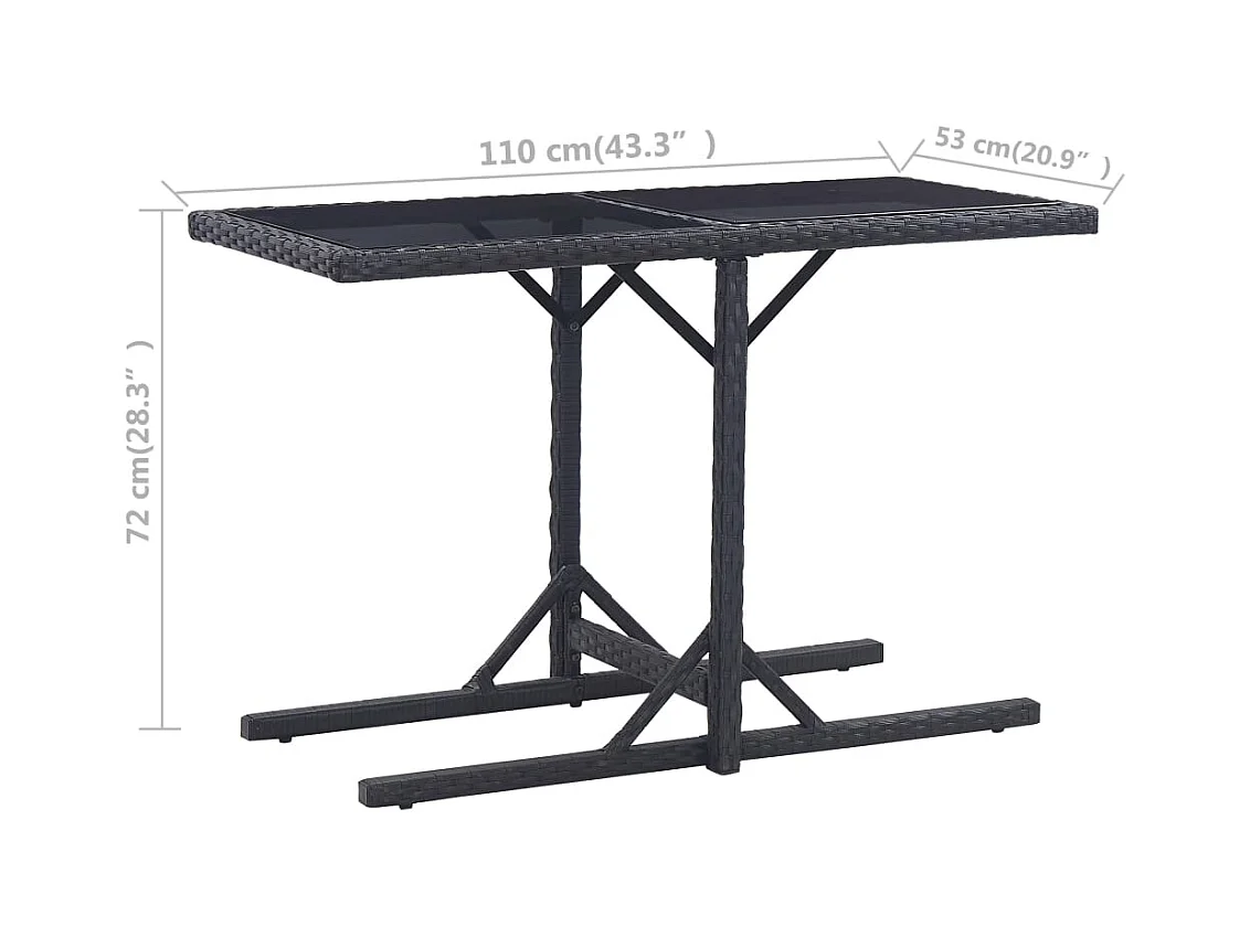Zwarte tuintafel 110x53x72 cm Glas en geweven hars