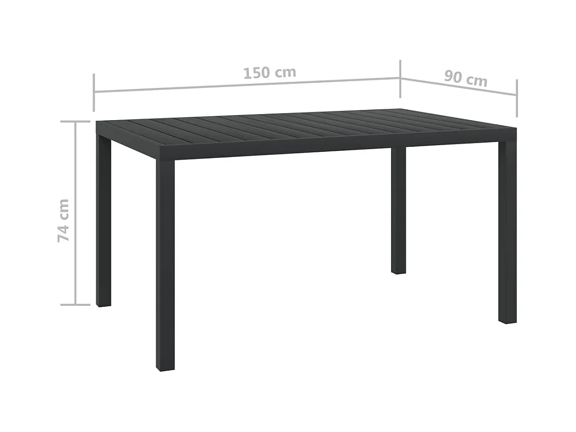 Zwarte tuintafel 150 x 90 x 74 cm Aluminium en WPC