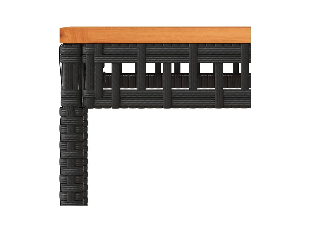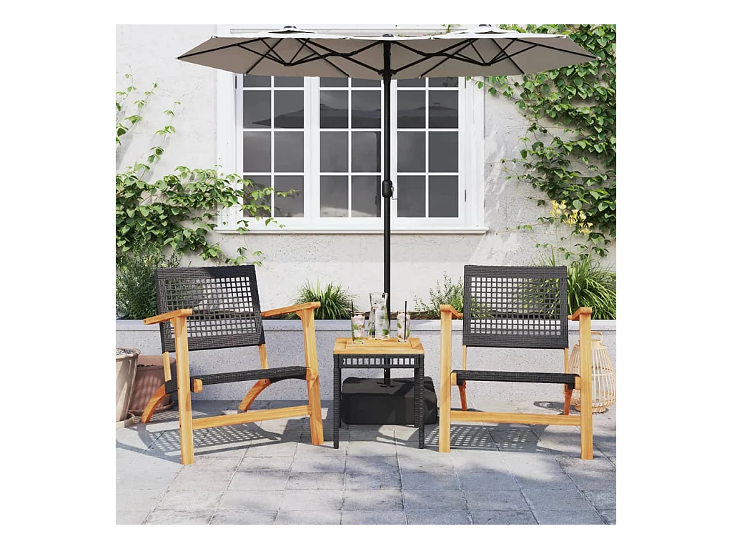 Tuintafel en blad in zwart acaciahout en gevlochten hars