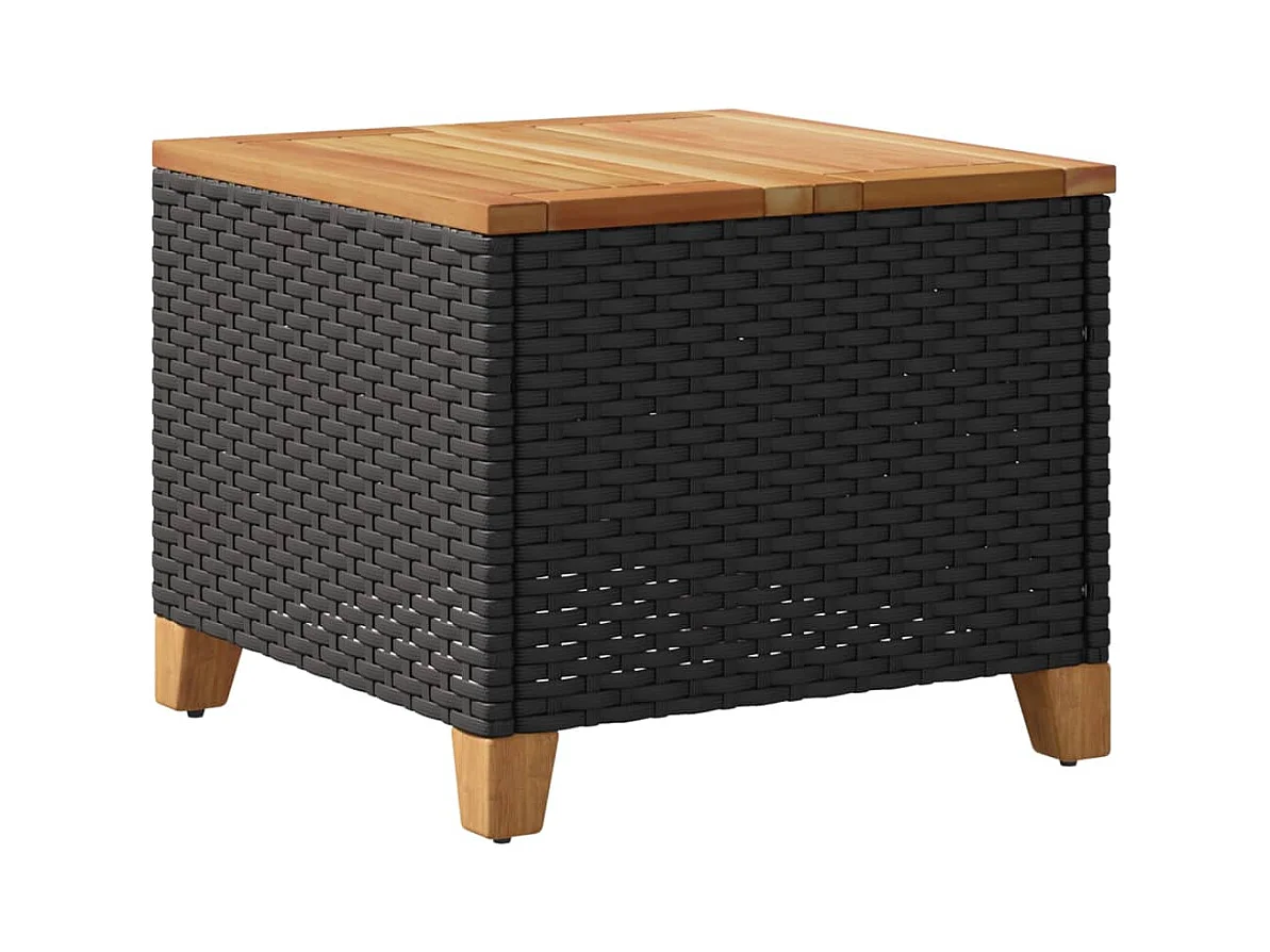 Zwarte tuintafel 45x45x37 cm gevlochten hars en acaciahout