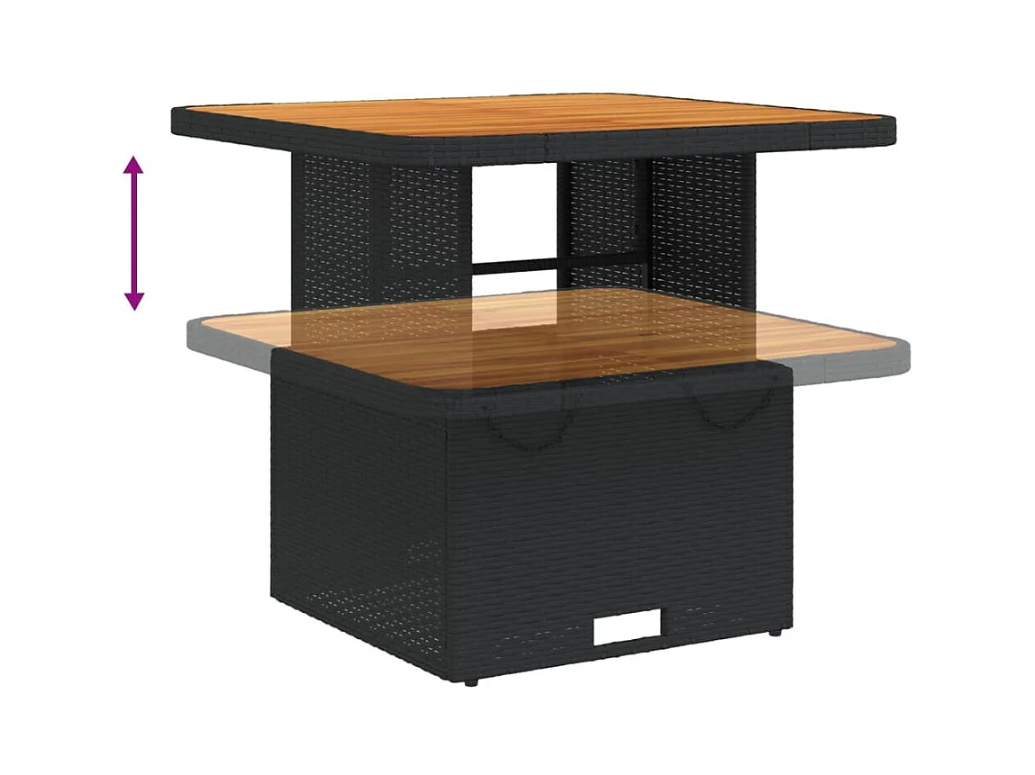 Zwarte tuintafel 80x80x71 cm gevlochten hars en acaciahout