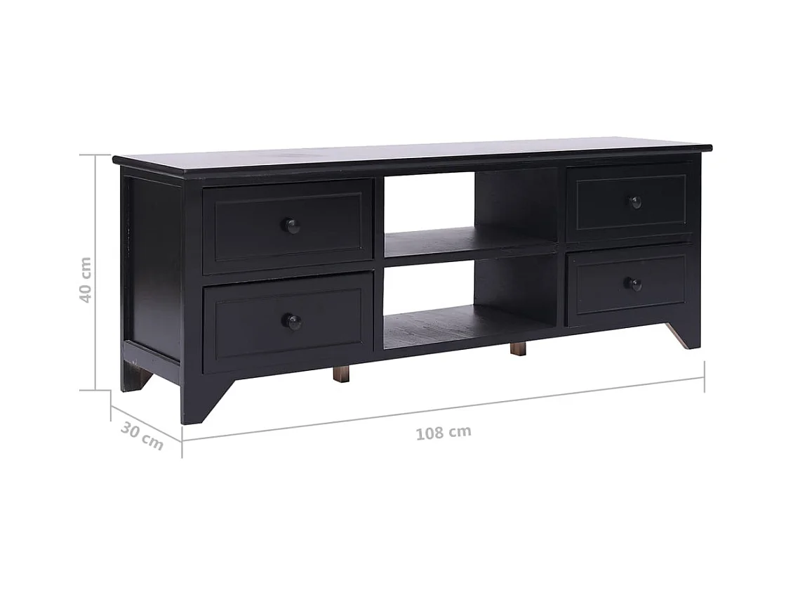 Zwarte tv-kast 108x30x40 cm massief paulowniahout
