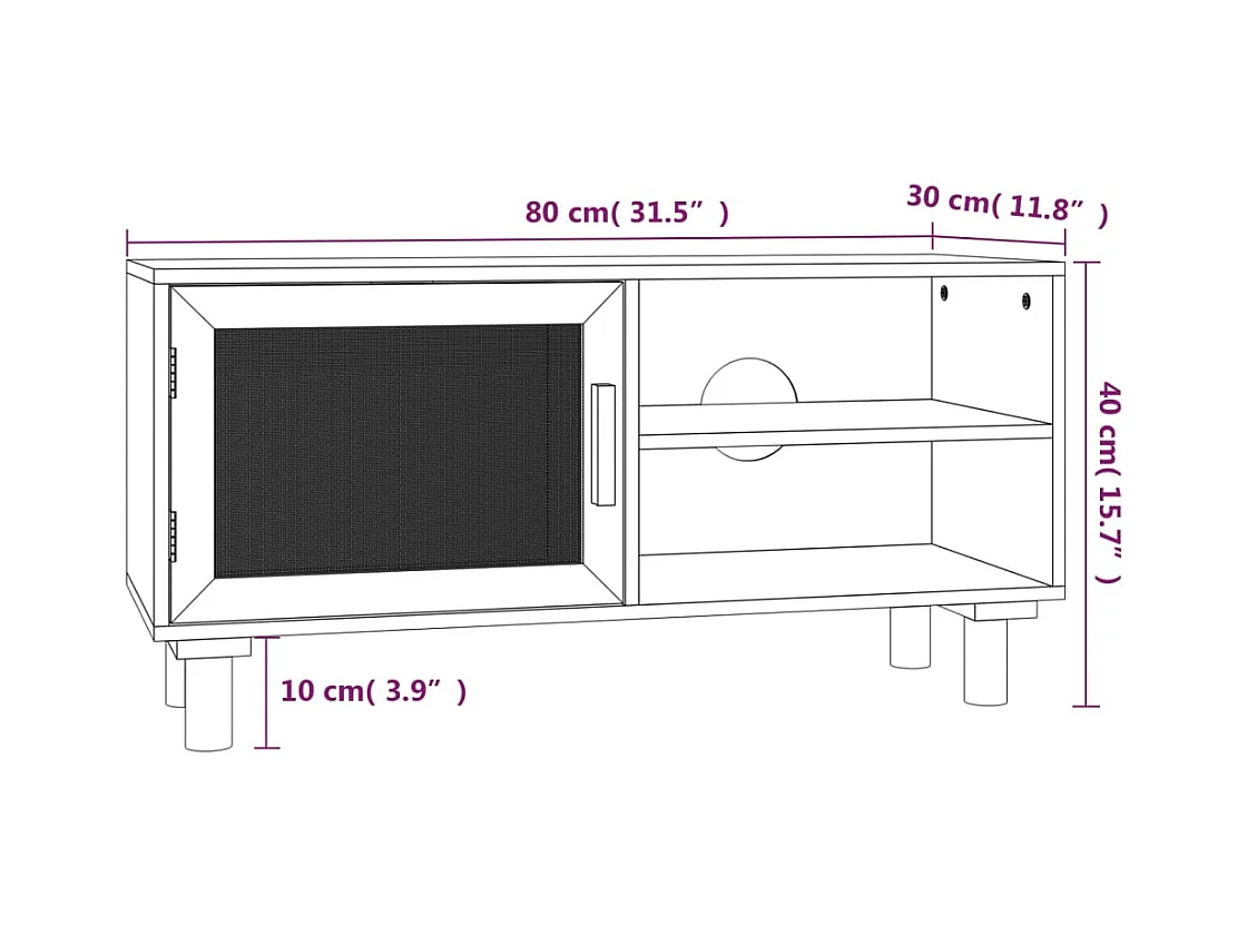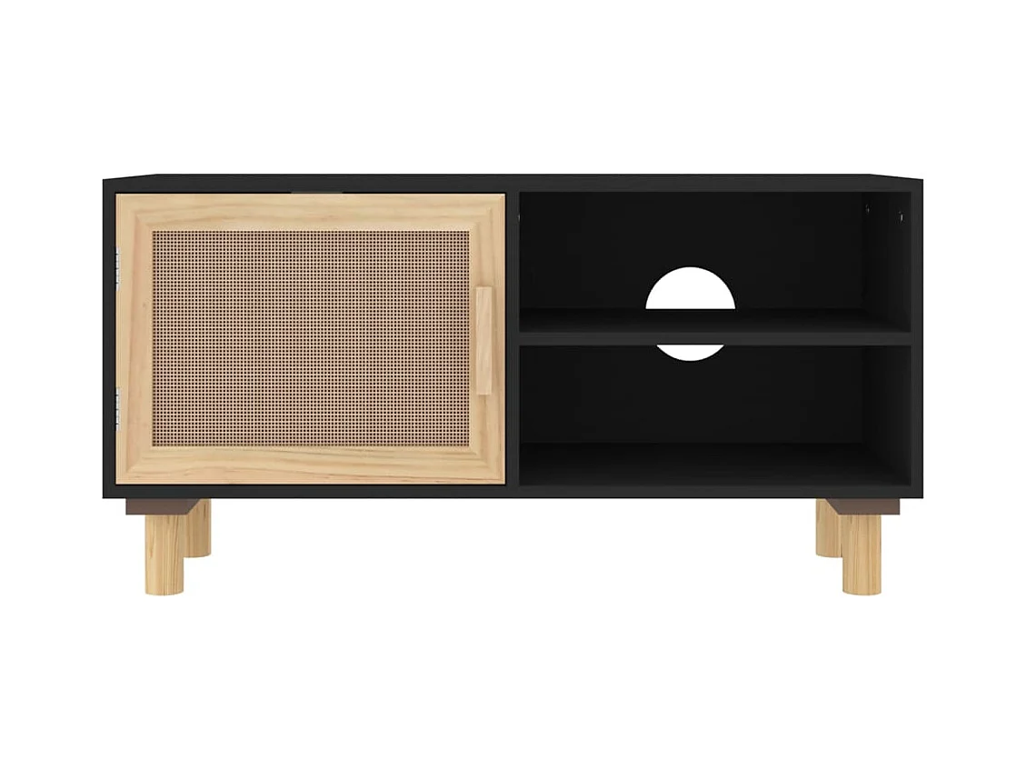 Zwarte tv-kast 80x30x40 cm Massief grenenhout en natuurlijk rotan