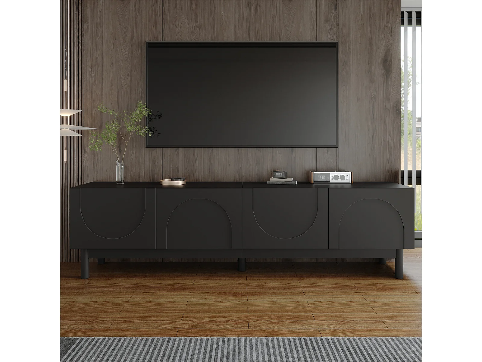 Zwarte tv-standaard met 4 deuren, tv-kast, opbergmeubel met verstelbare verdelers