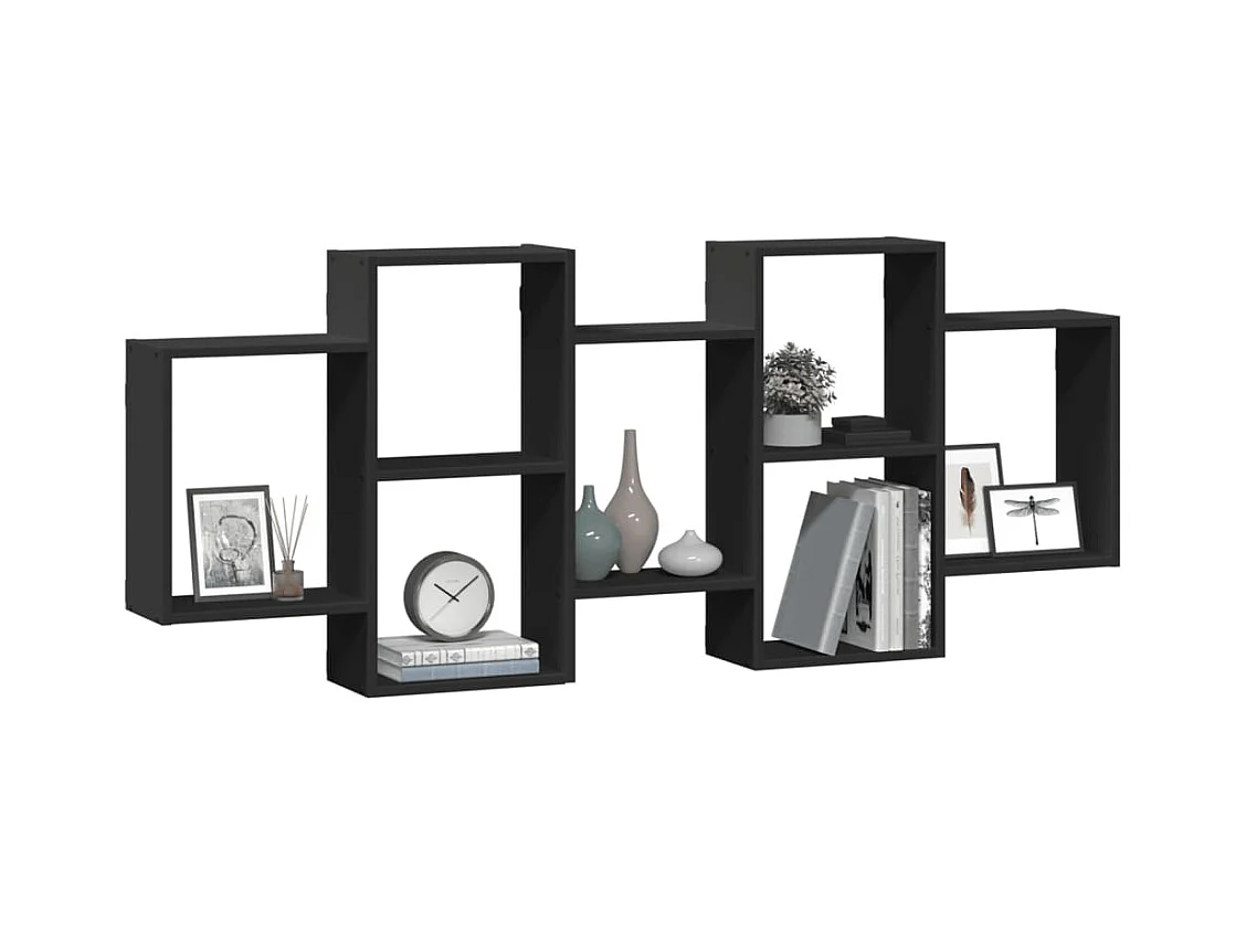 Wandplanken 3 stuks zwart 58x18x18 cm bewerkt hout