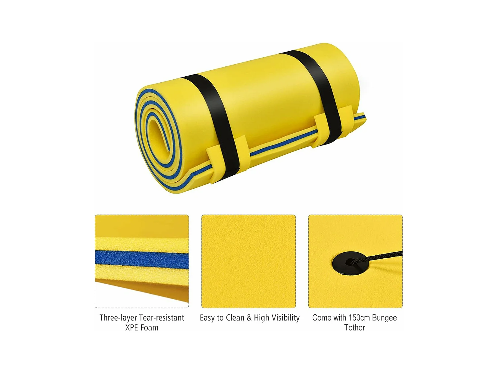 Zwemmat 210x66 cm, drijvende watermat tot 60 kg belastbaar,van scheurbestendig XPE-schuim,waterhangmat voor kinderen en volwassenen (geel)AB92211