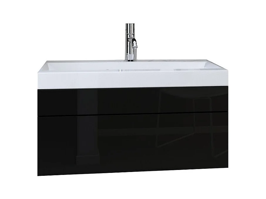 Onderbouw wastafelmeubel 80 cm zwevend uit de RAVEN collectie, mat en glanzend zwart, inclusief wastafel en sifon