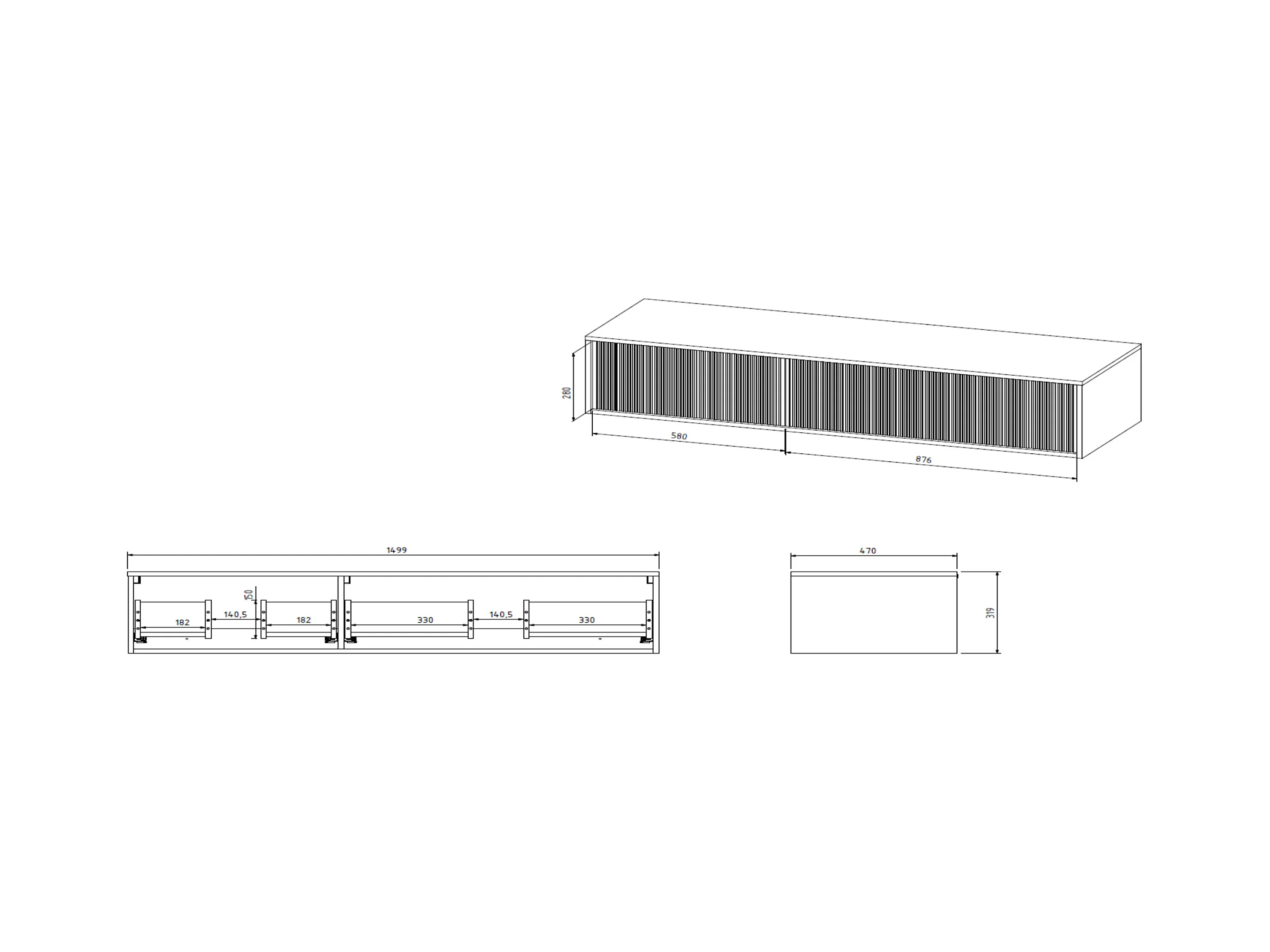 Zwevend, geribbeld wastafelmeubel met dubbele wastafel - Wit - 150 cm - ARNEGA