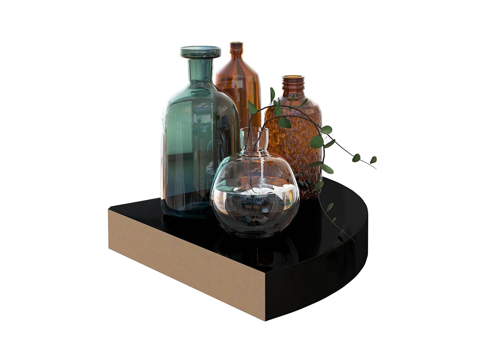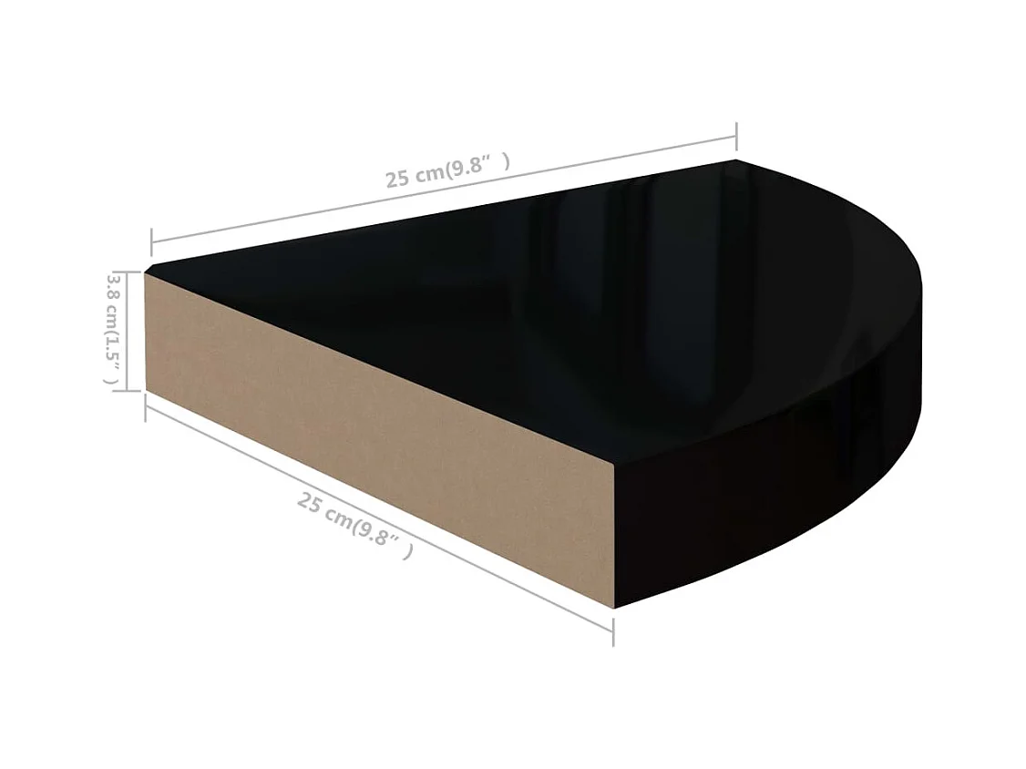 323889 Zwevende hoekplank hoogglans zwart 25x25x3,8 cm MDF
