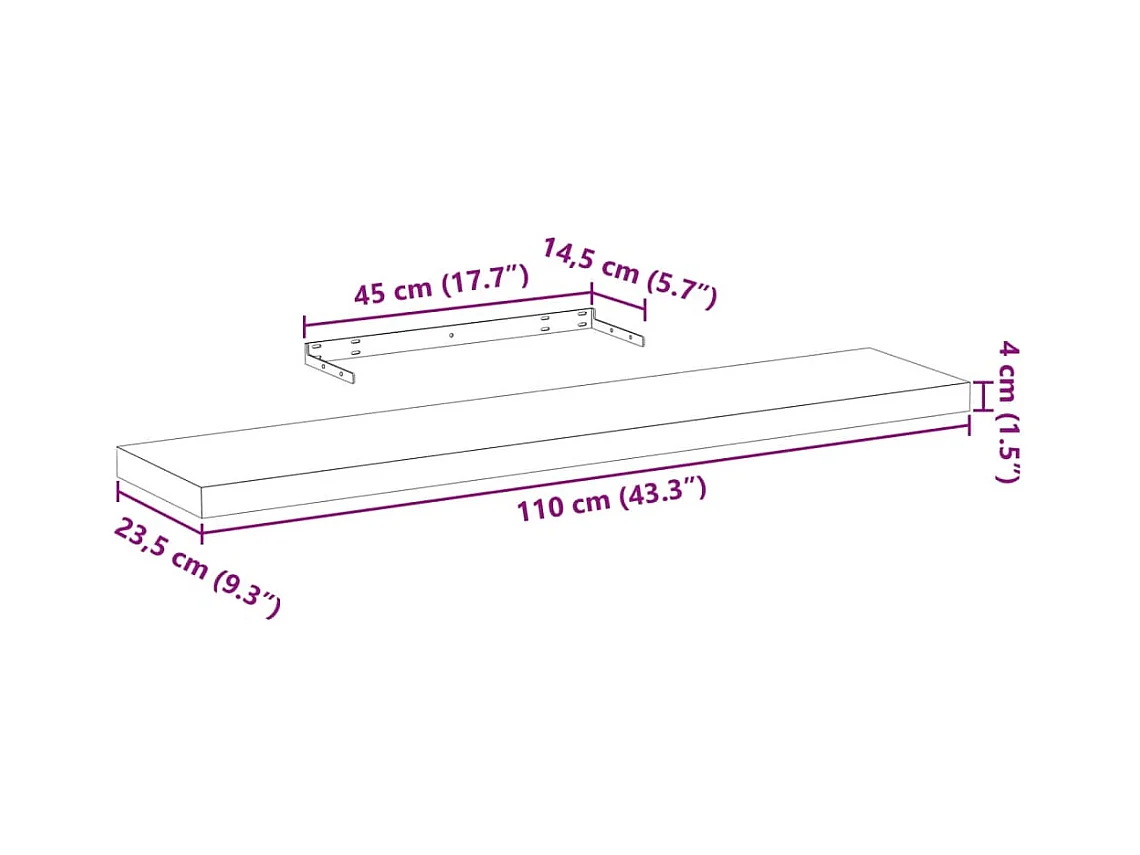 Zwevende planken 2 stuks 110x23,5x4 cm bewerkt hout