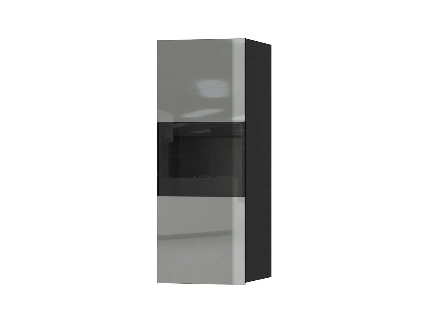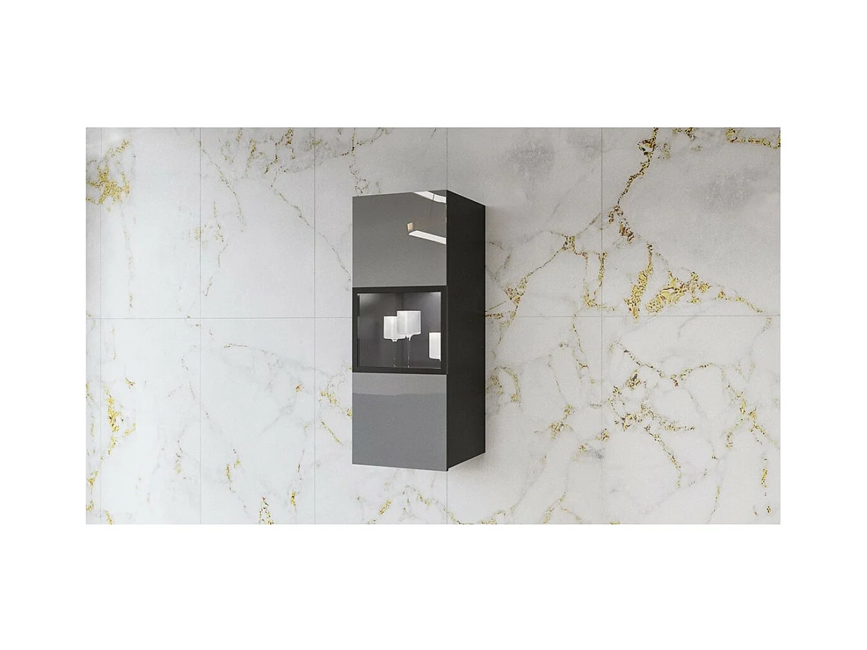 Zwevende vitrinekast, 1 glazen deur met geïntegreerde LED uit de ZANTE collectie. Kleur: zwart en glanzend grijs.