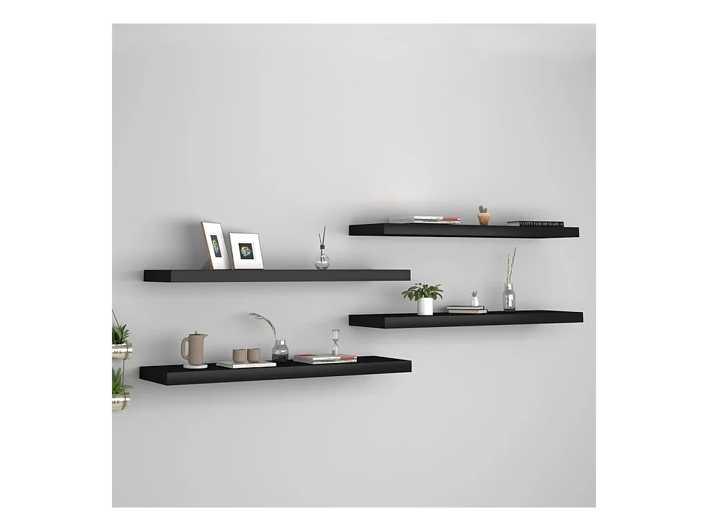 Zwevende wandplanken 4 stuks zwart 90x23,5x3,8 cm MDF