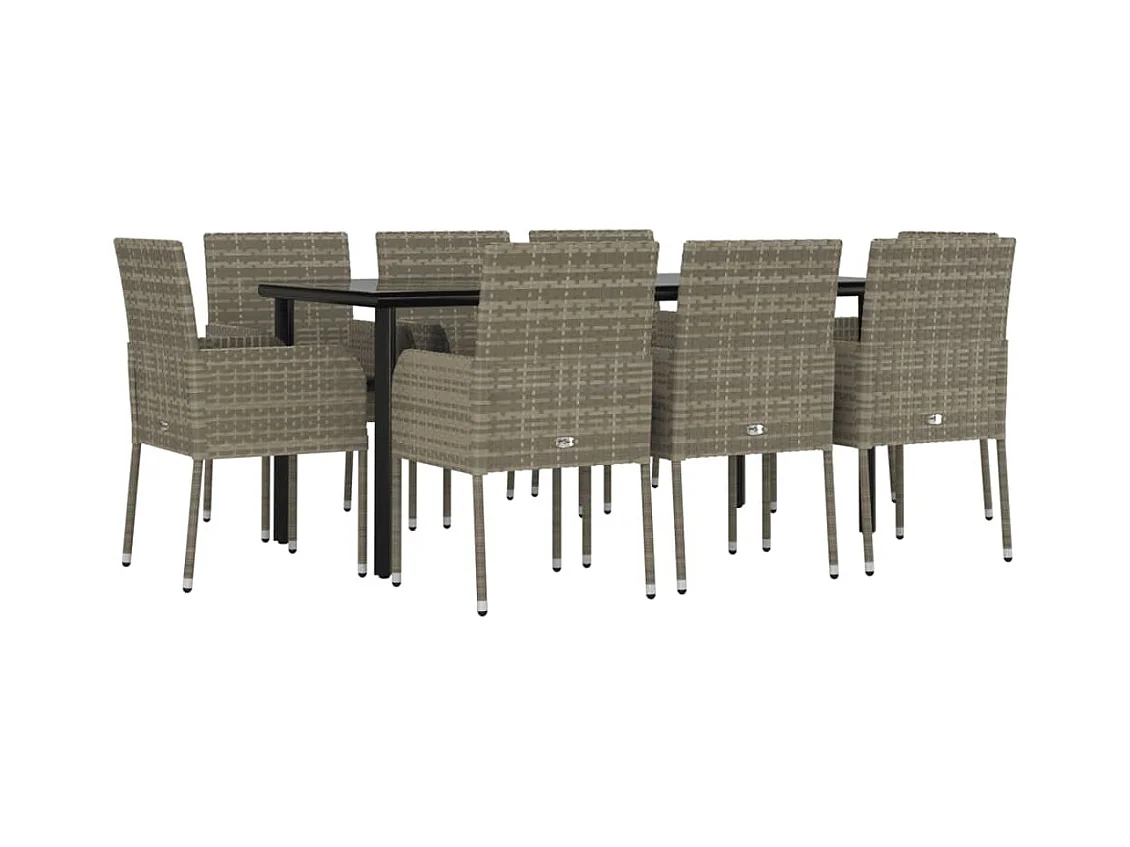 Eliseo 9-delige Tuinset met kussens grijs en zwart