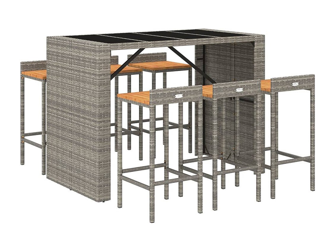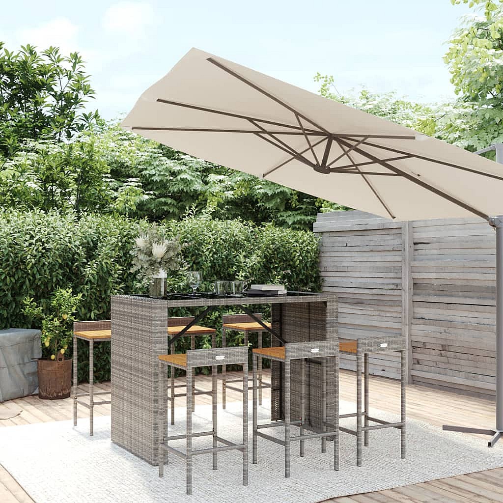 Zylen 7-delige Tuinbarset poly rattan en massief acaciahout grijs